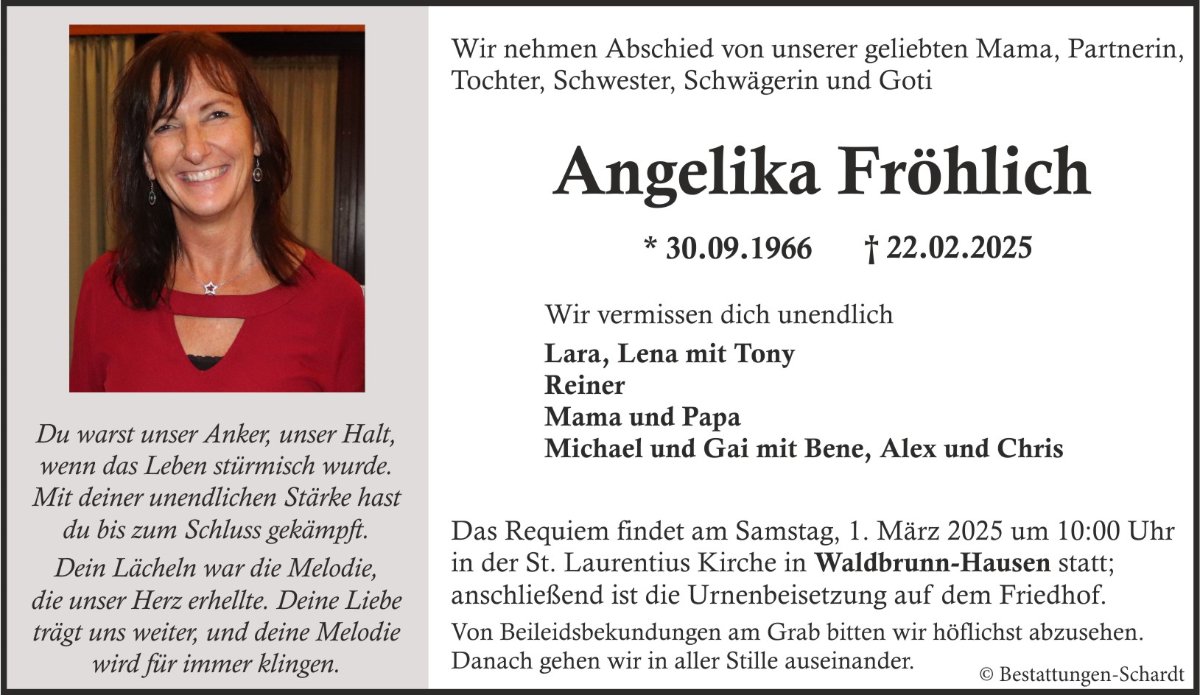 der Tod von Angelika erfüllt mich mit großer Trauer.