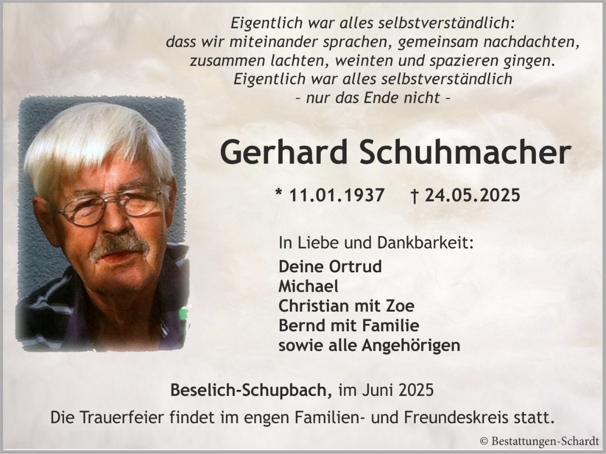 Gerhard Schuhmachergestorben am 24. Mai 2025