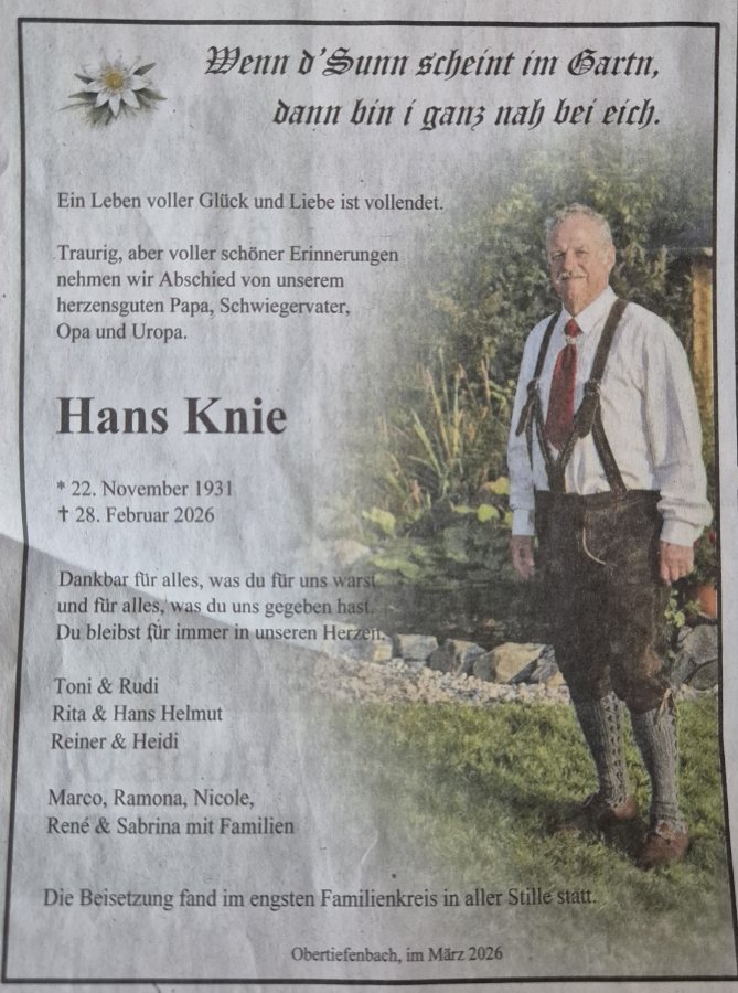 Lesen Sie hier die Anzeigen und Trauerpost!