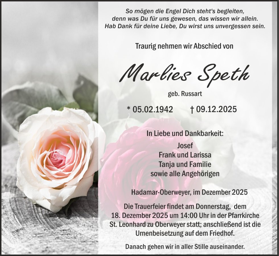 Mein herzliches Beileid zum Tod von Marlies.